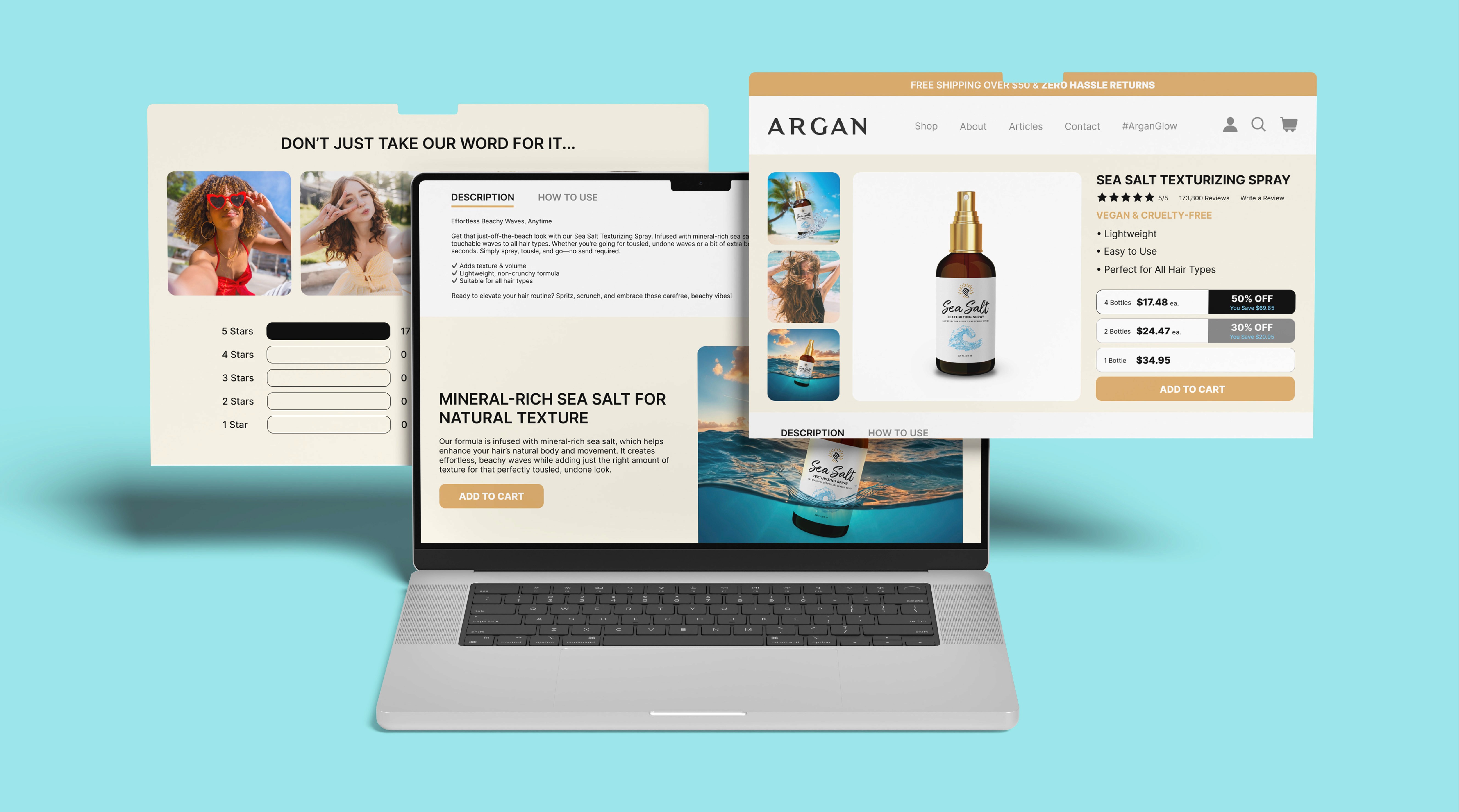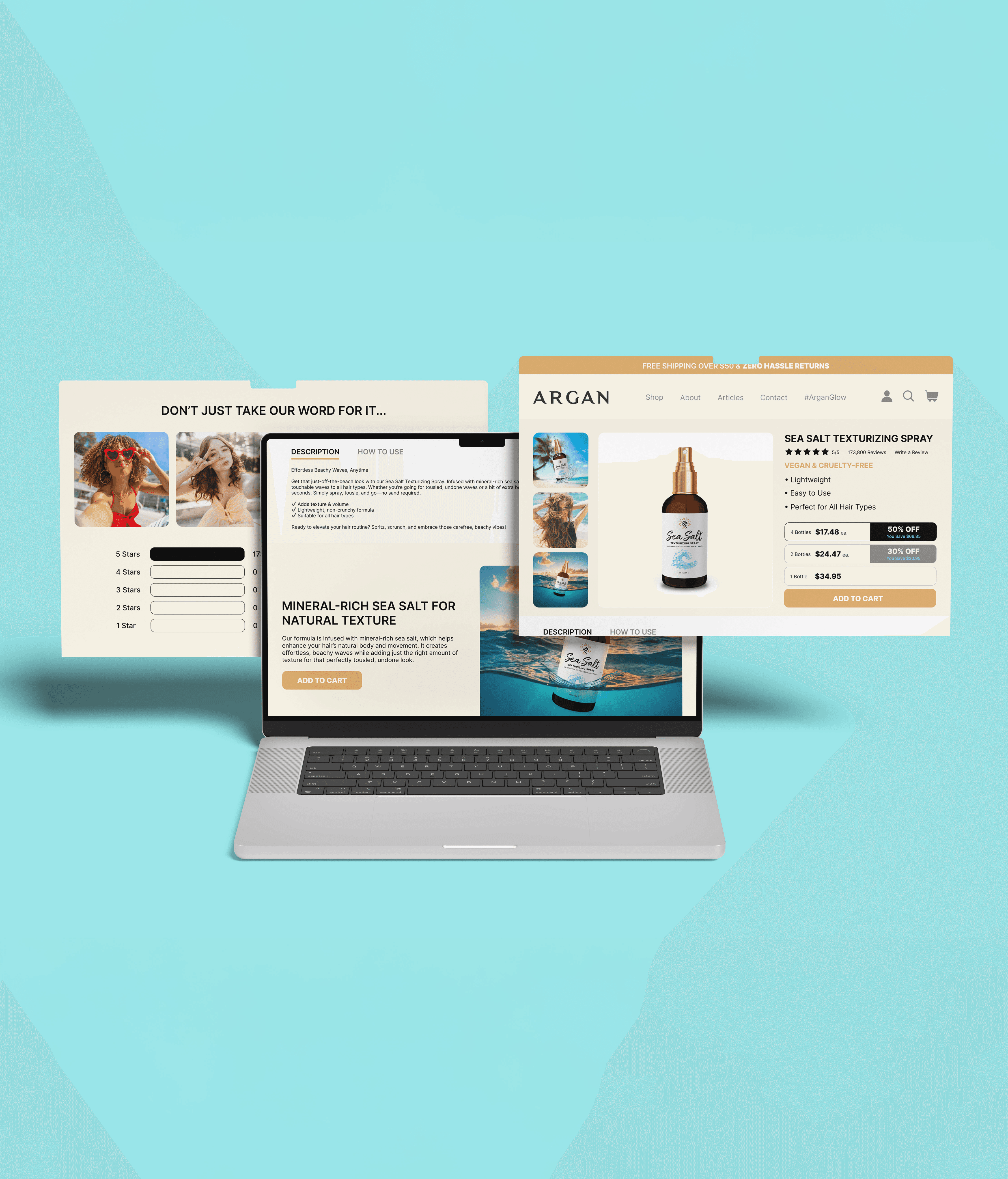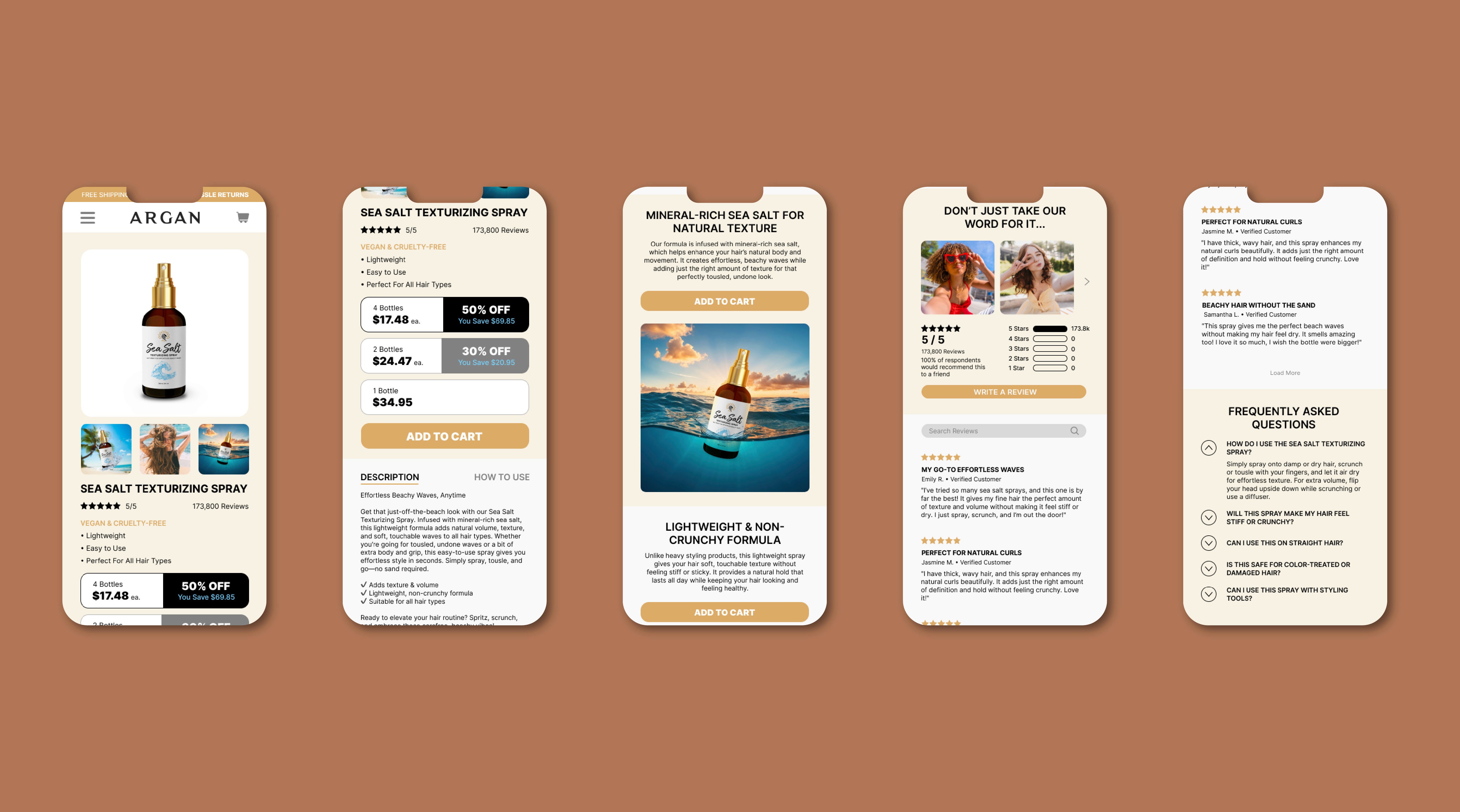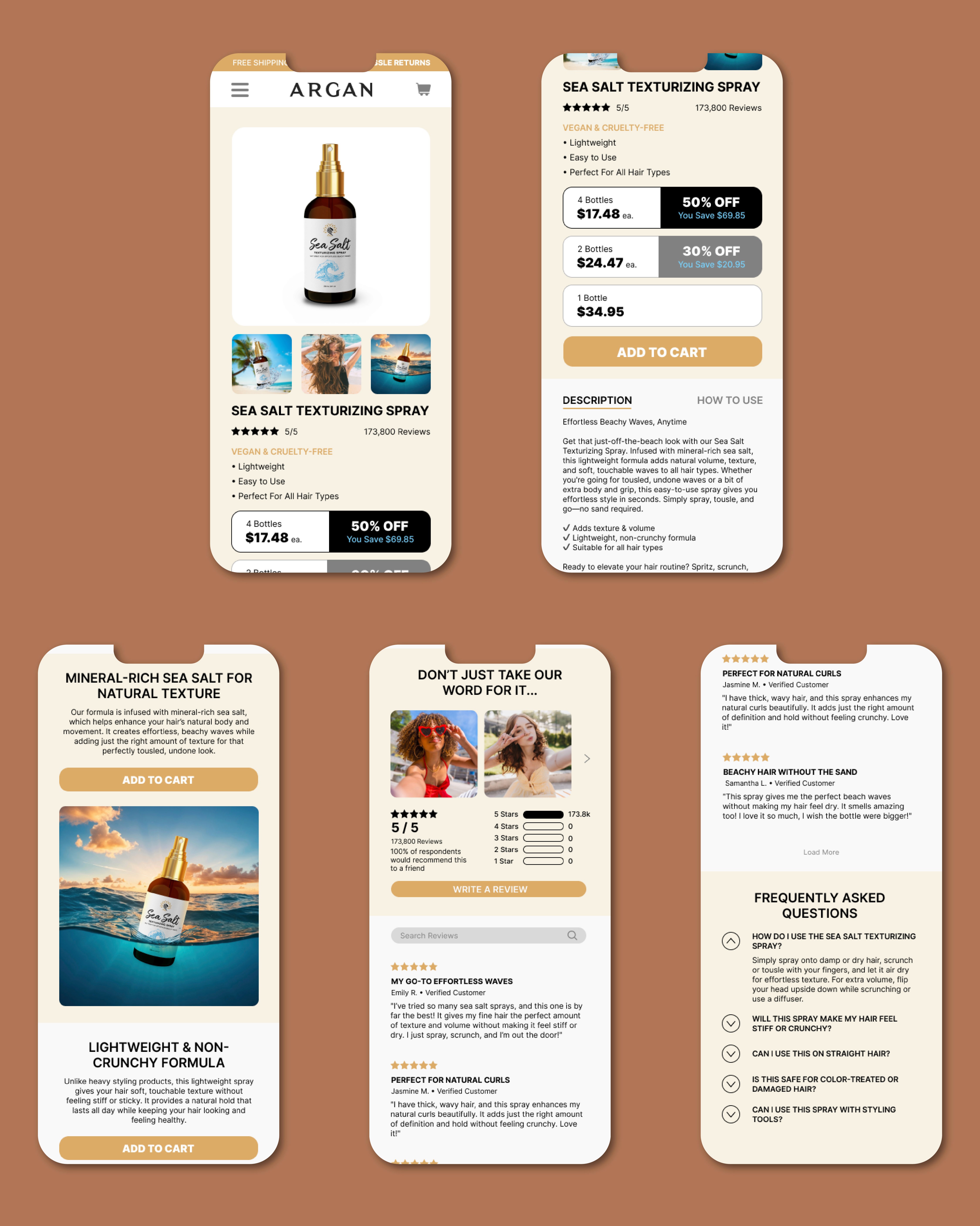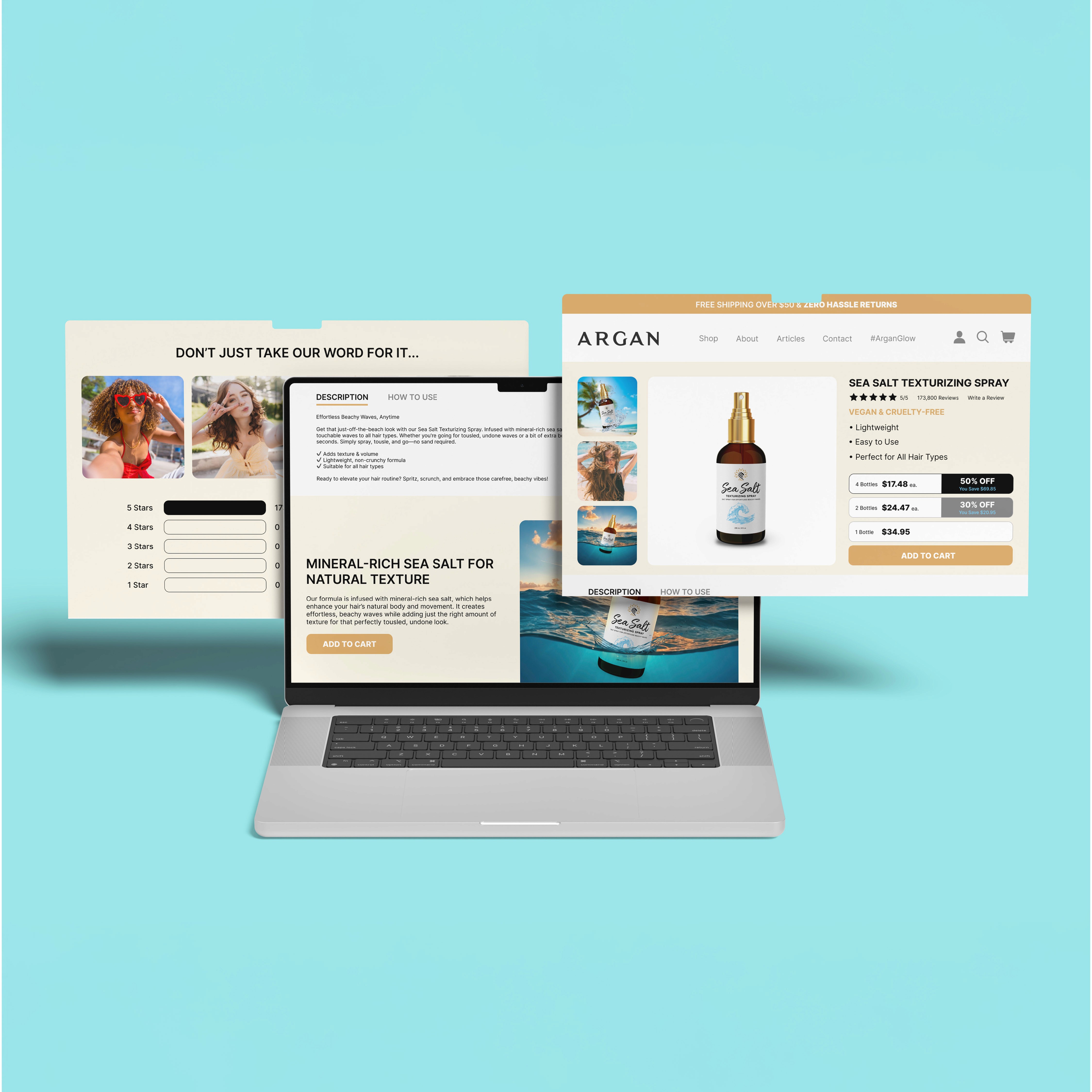 The Argan Oil Sea Salt Spray was developed to meet growing consumer demand for natural texture products that enhance waves without dryness or stiffness. The goal was to introduce a styling product that felt nourishing, beach-inspired, and elevated—bridging performance and luxury.