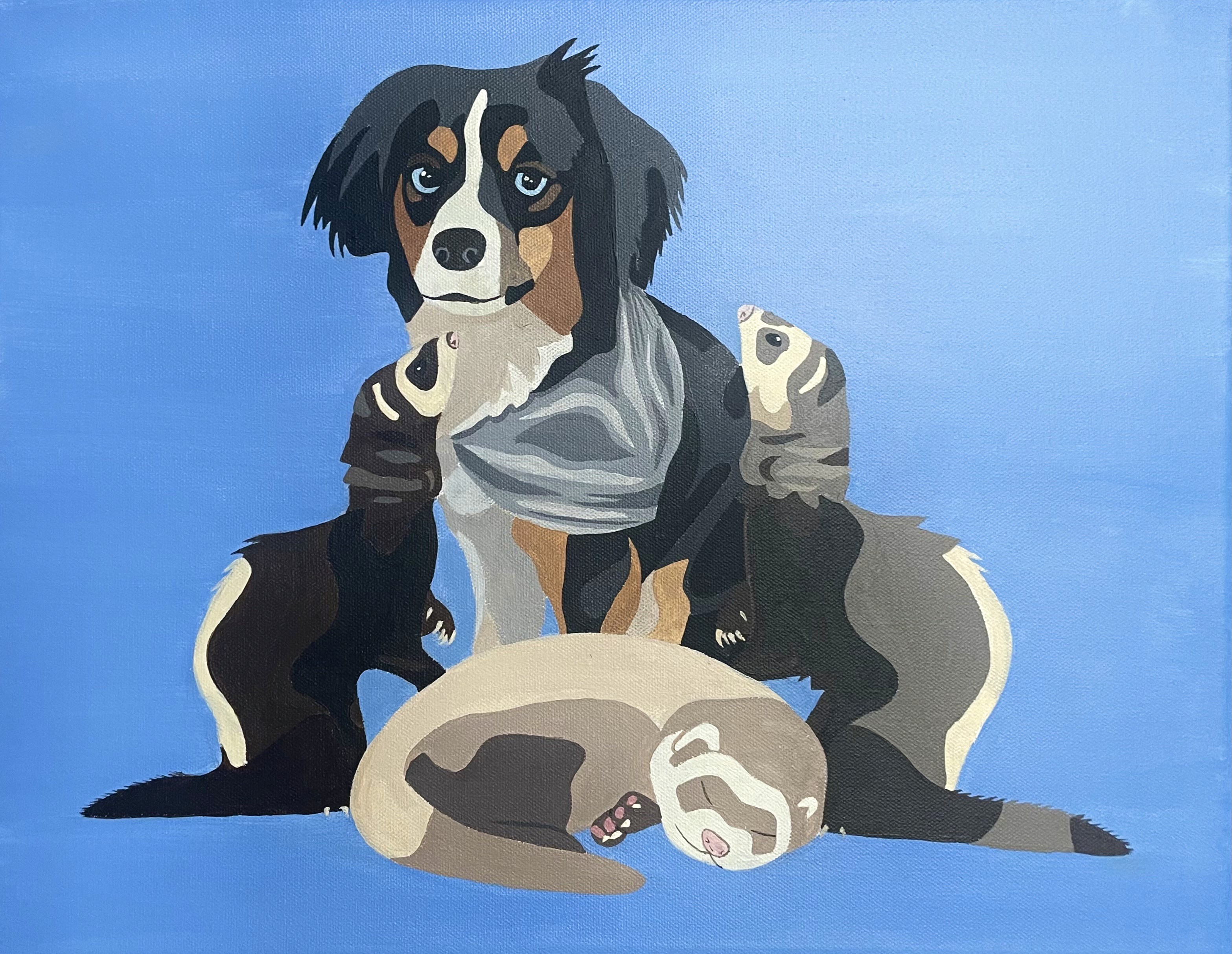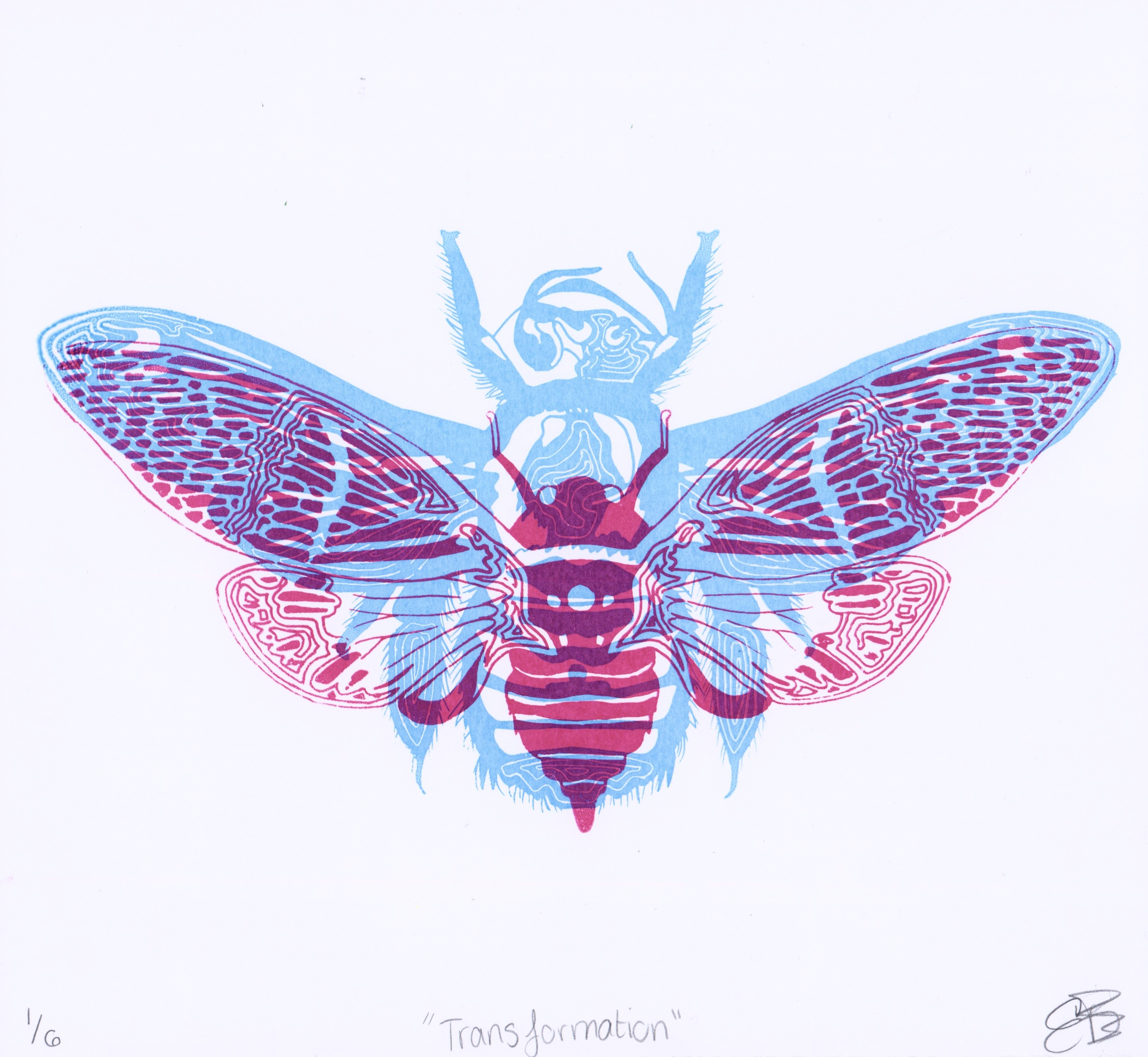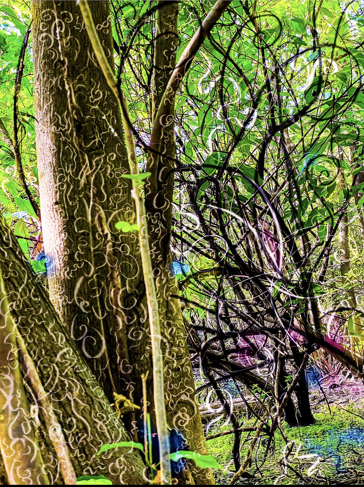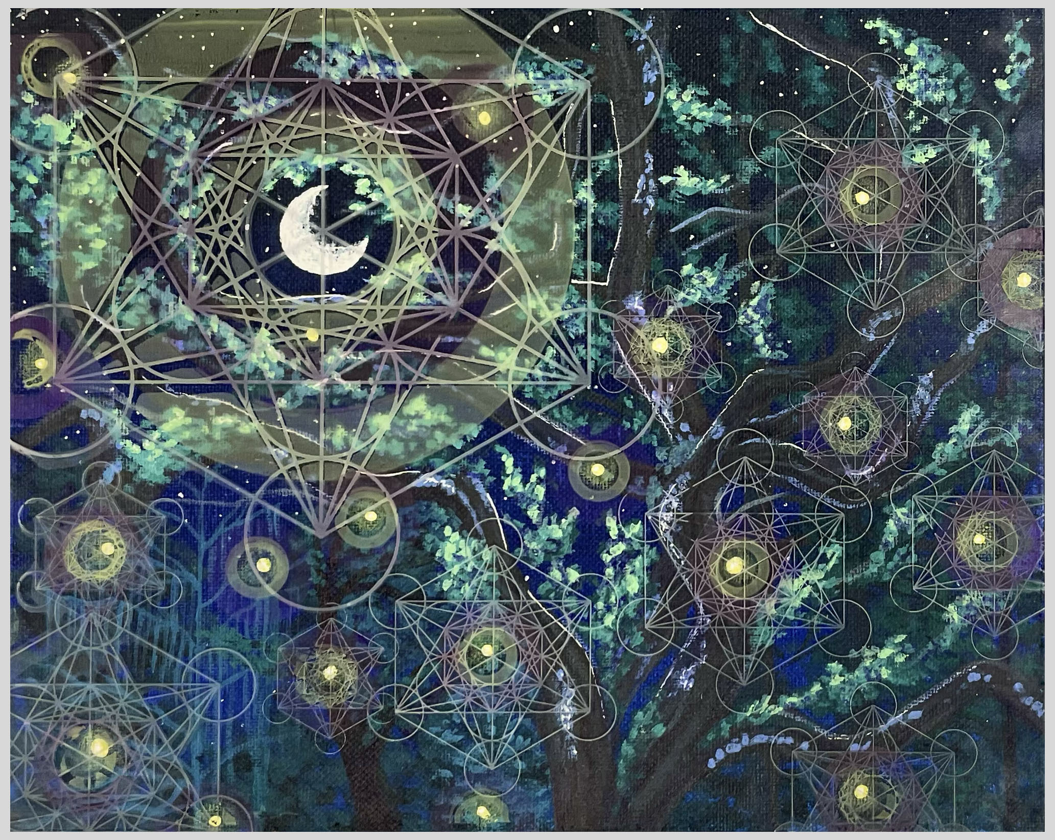 My physical artwork explores texture, depth, and process through mixed media, including acrylic, oil, and watercolor paint, graphite, charcoal, screenprint, and cyanotypes. Working hands-on with physical materials informs my understanding of contrast, layering, and composition in ways that translate directly to digital systems.