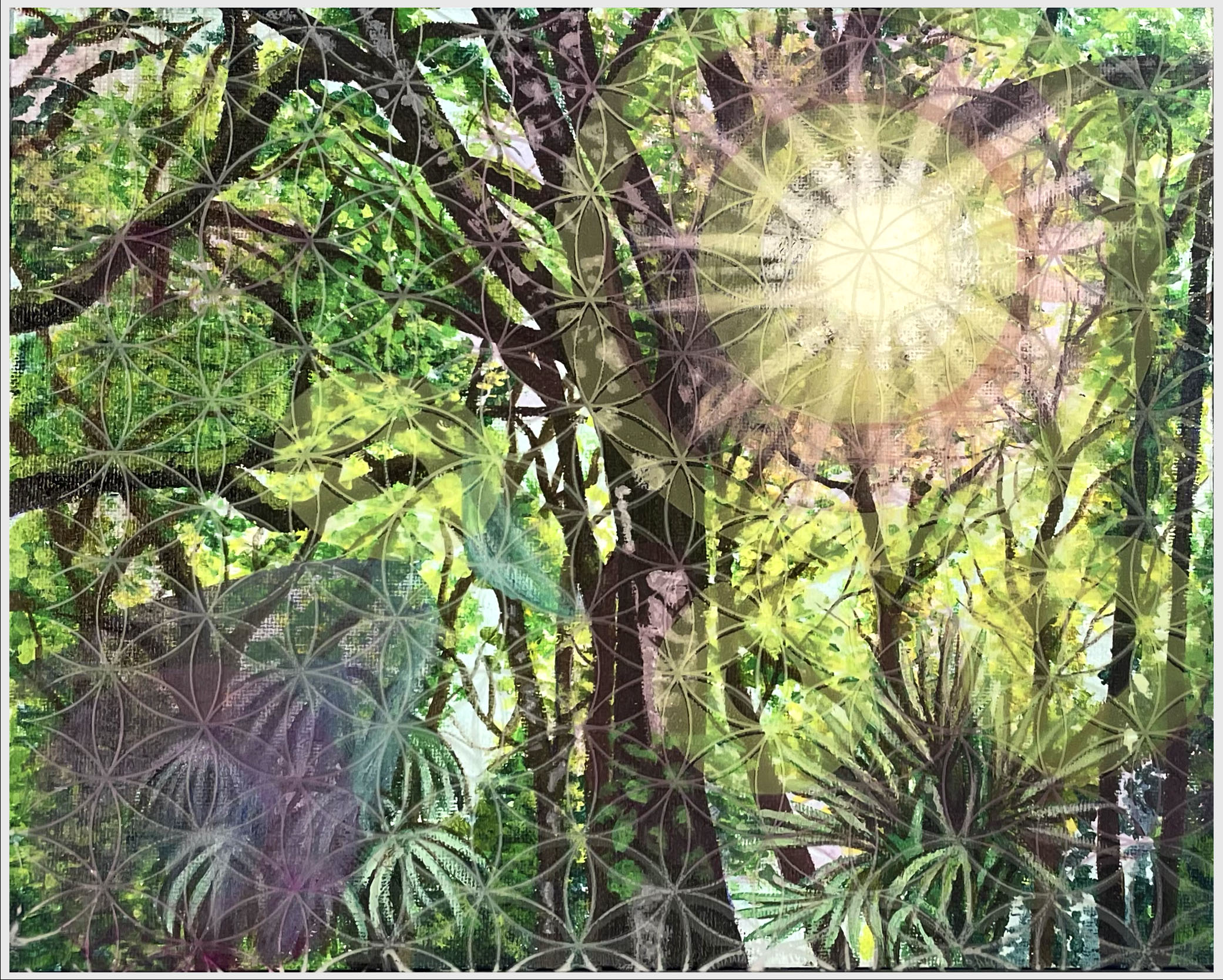 Digital, acrylic, oil, watercolor, gouache graphite, charcoal, screenprint, paper, cyanotype, woood.