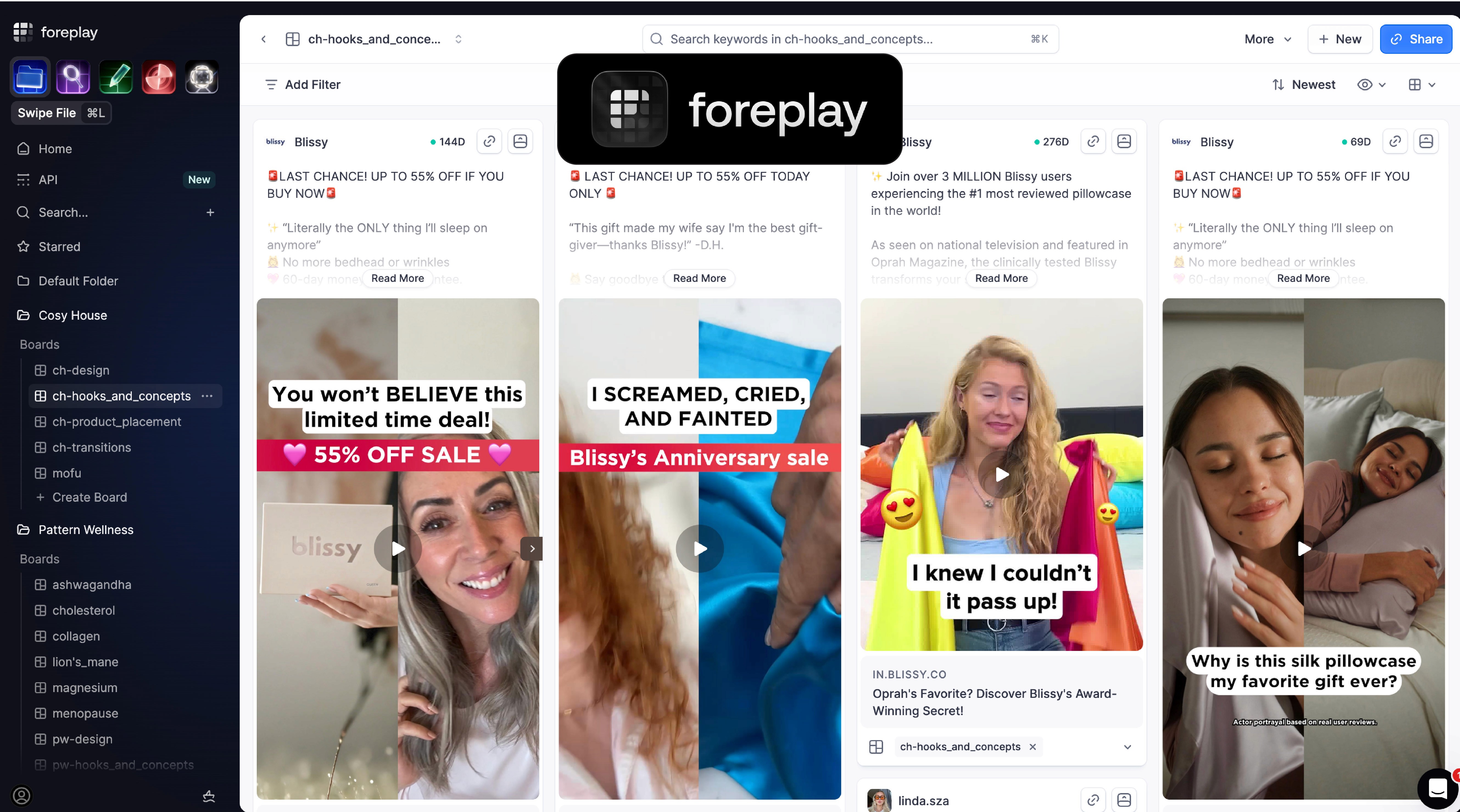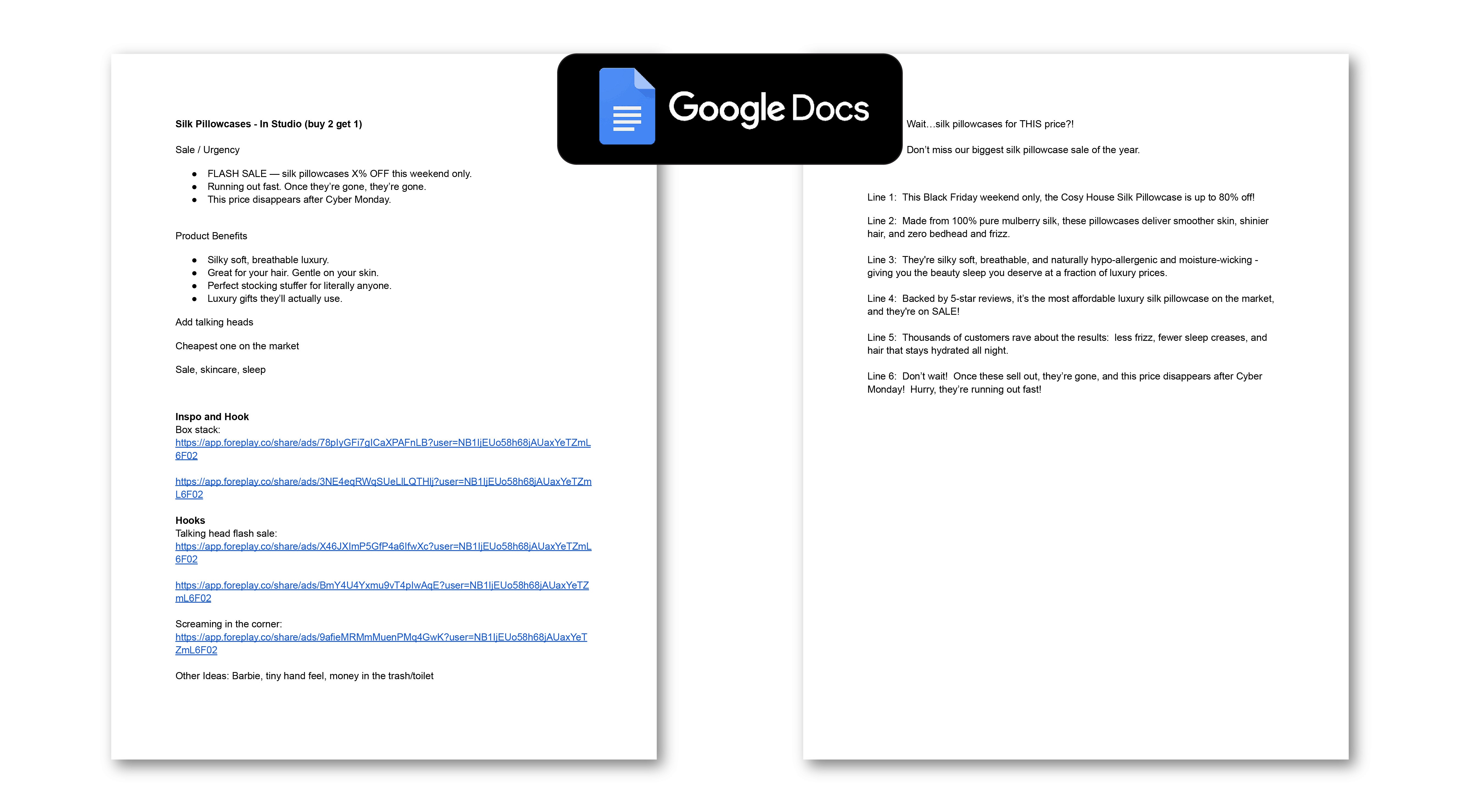 Each campaign begins with research into platform trends, competitor creative, and past performance insights. Reference imagery and video inspiration help establish tone, pacing, and visual direction before production begins.