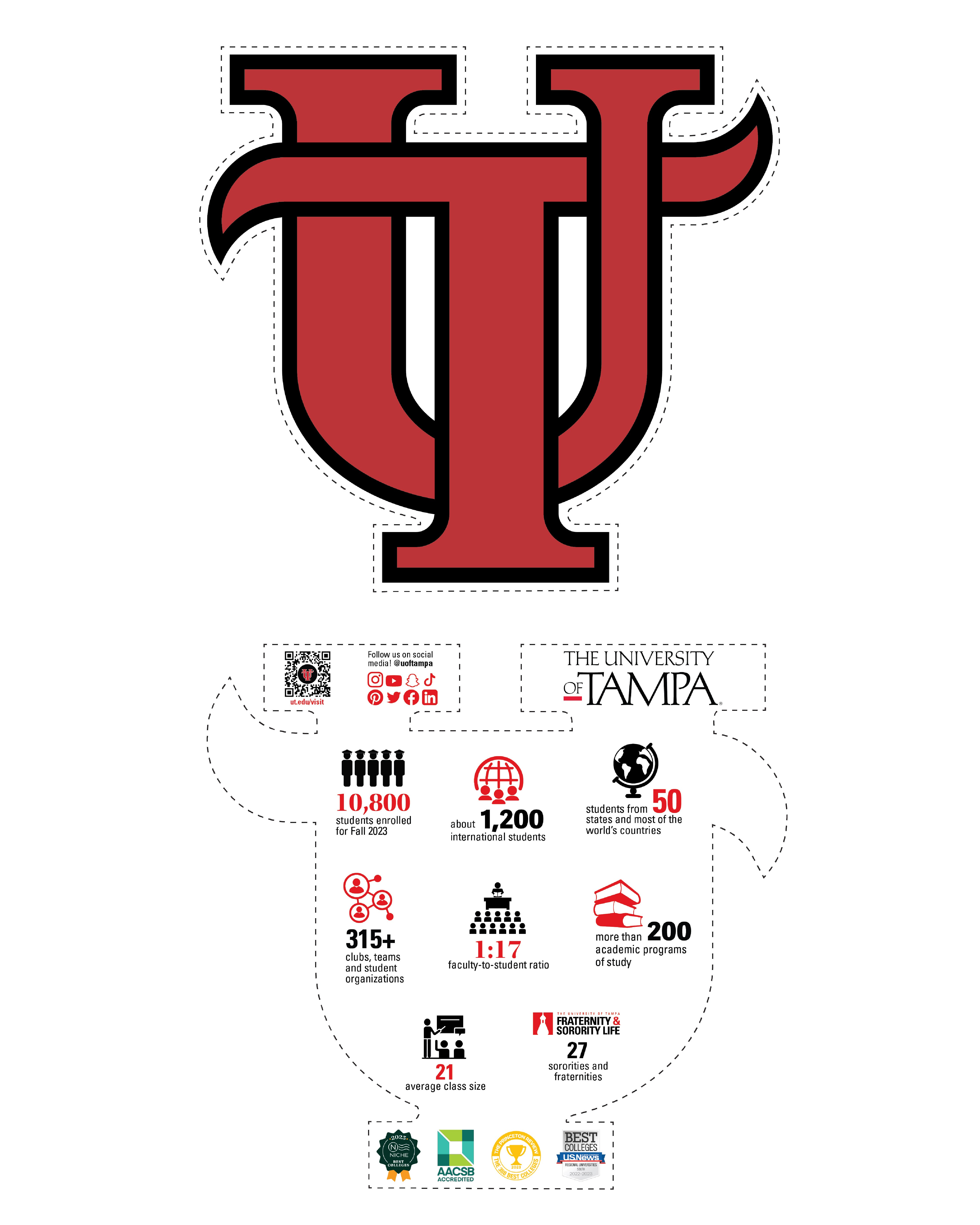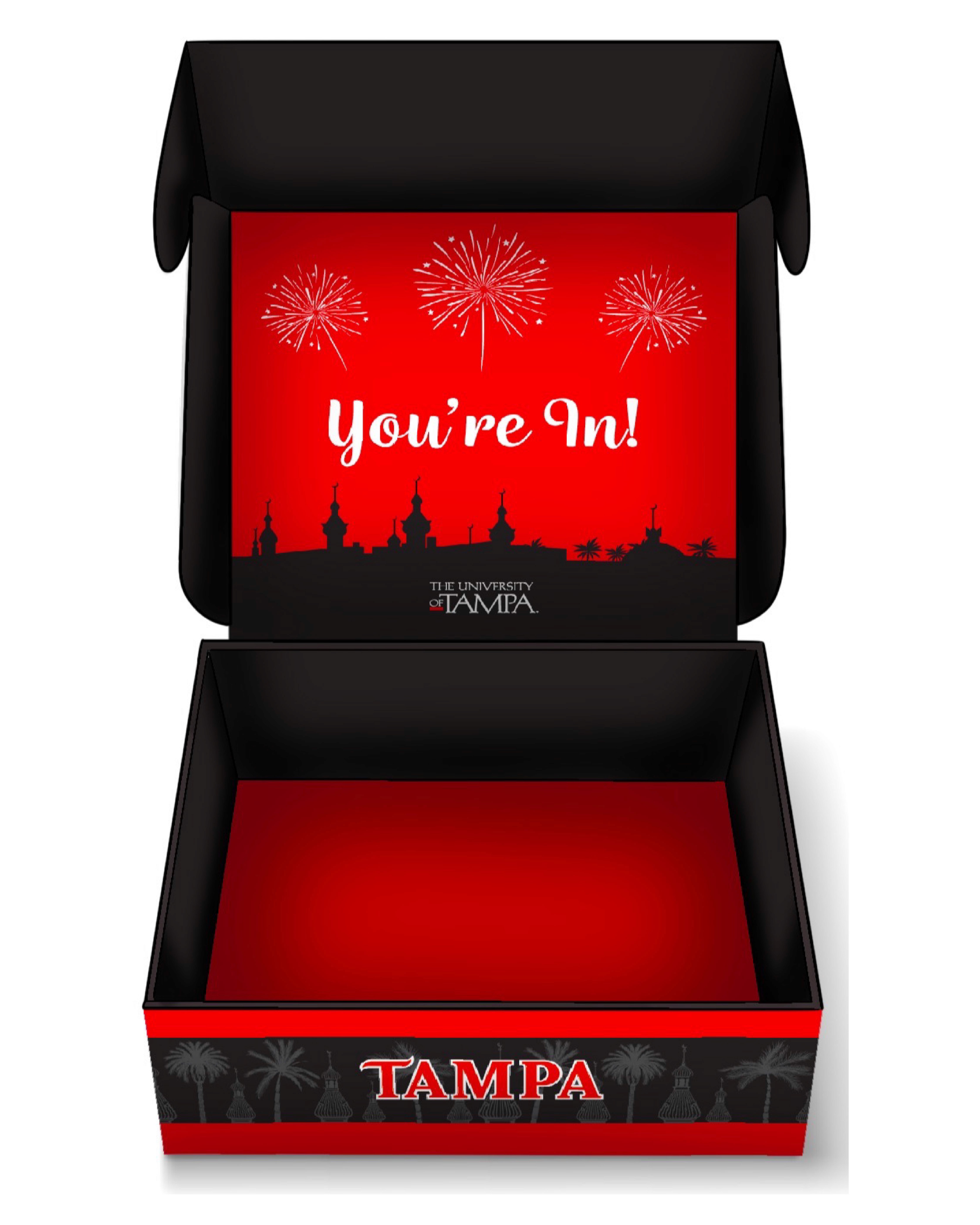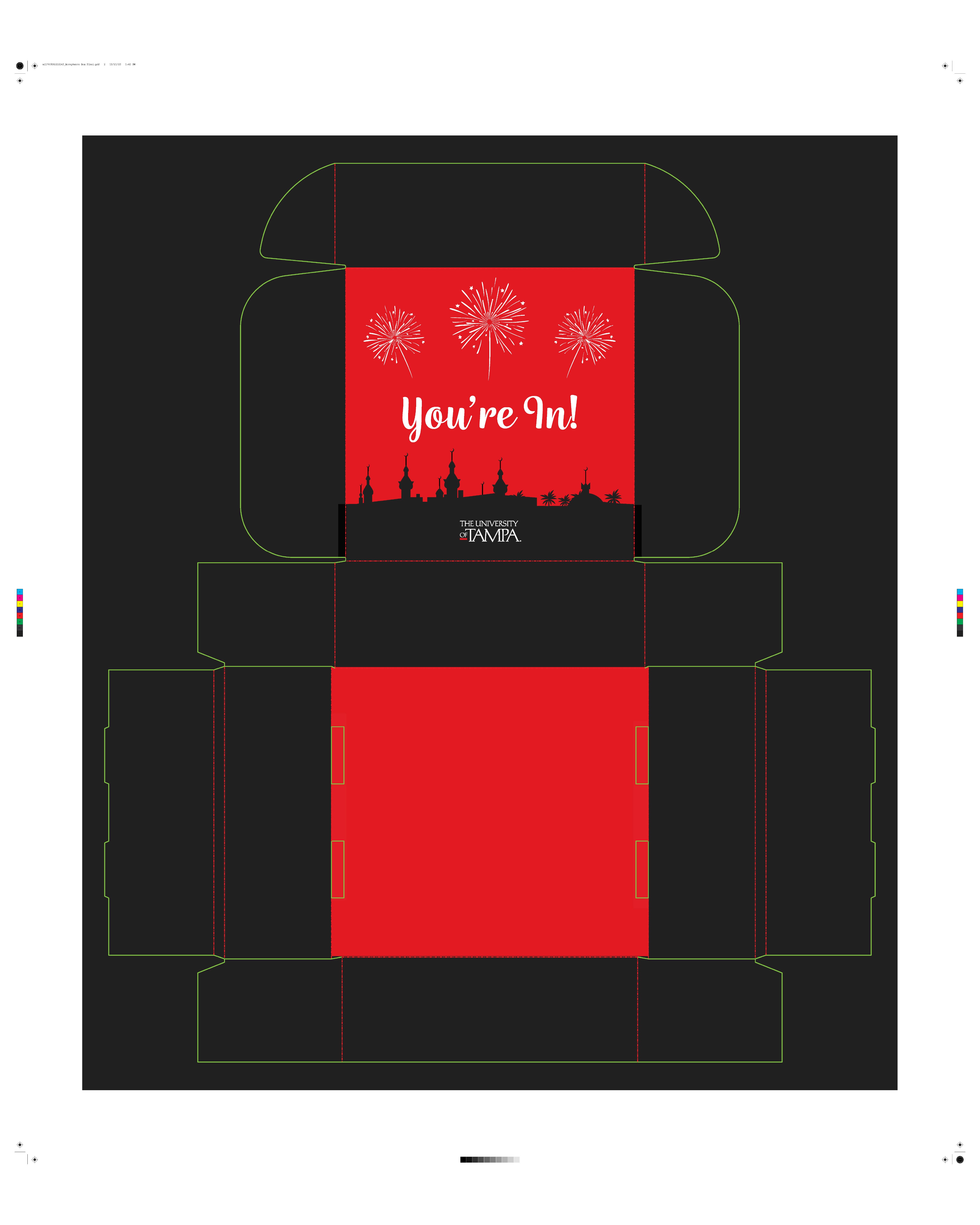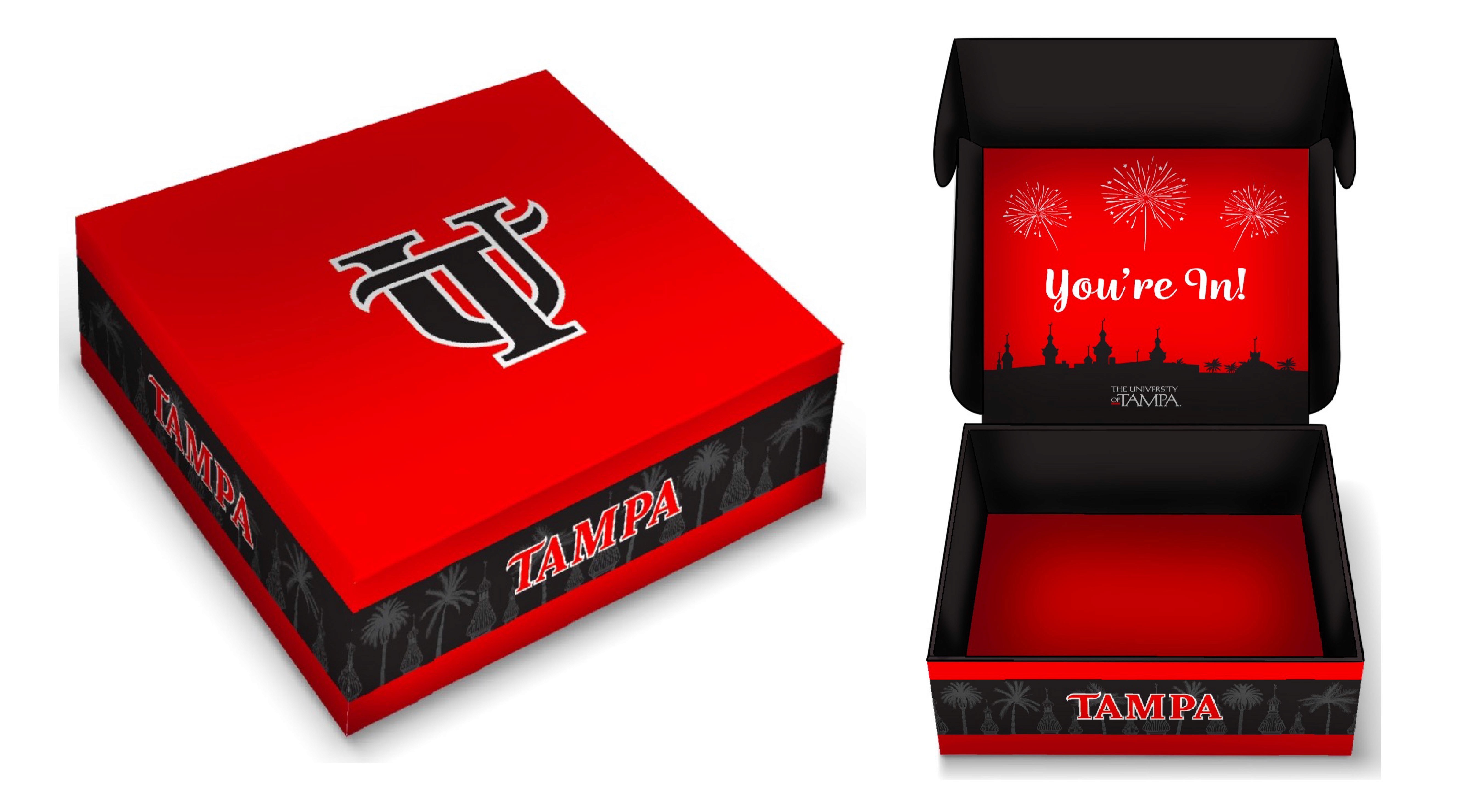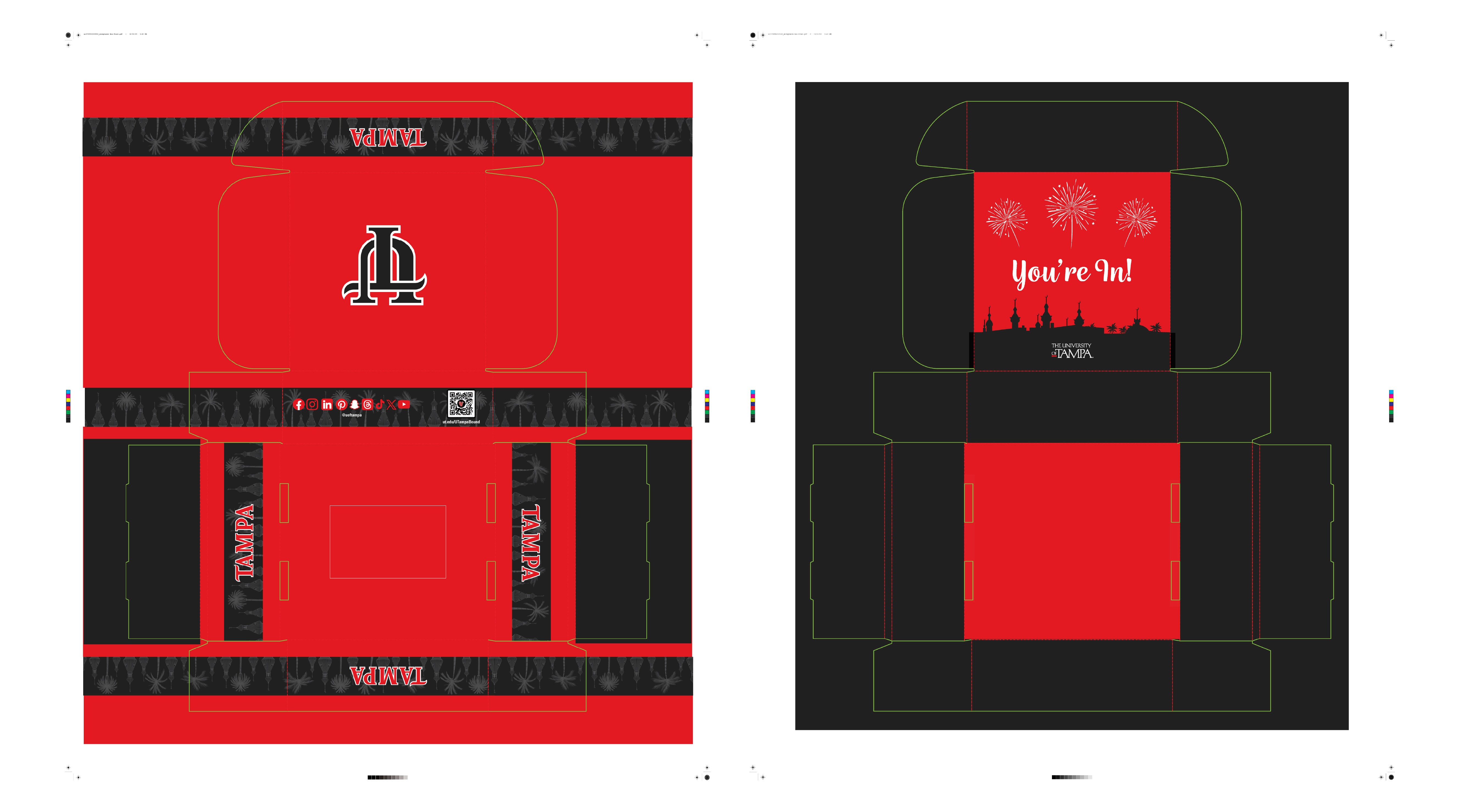 I contributed to multiple deliverables for the Spring 2024 admissions cycle, including a custom admissions box, branded tumbler, and a UT-shaped informational flyer. These materials were designed to make a strong first impression for prospective students while reinforcing school spirit and brand recognition.