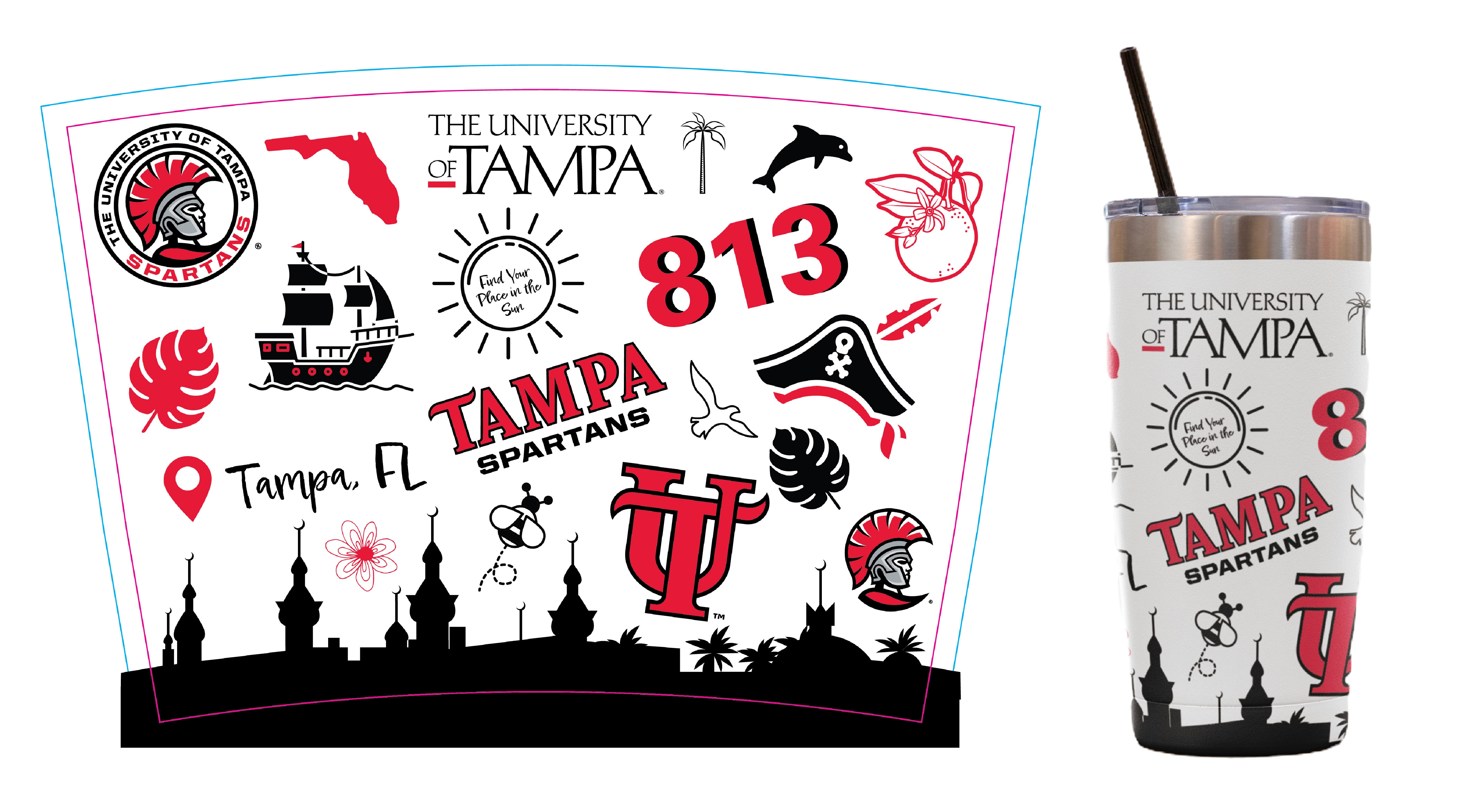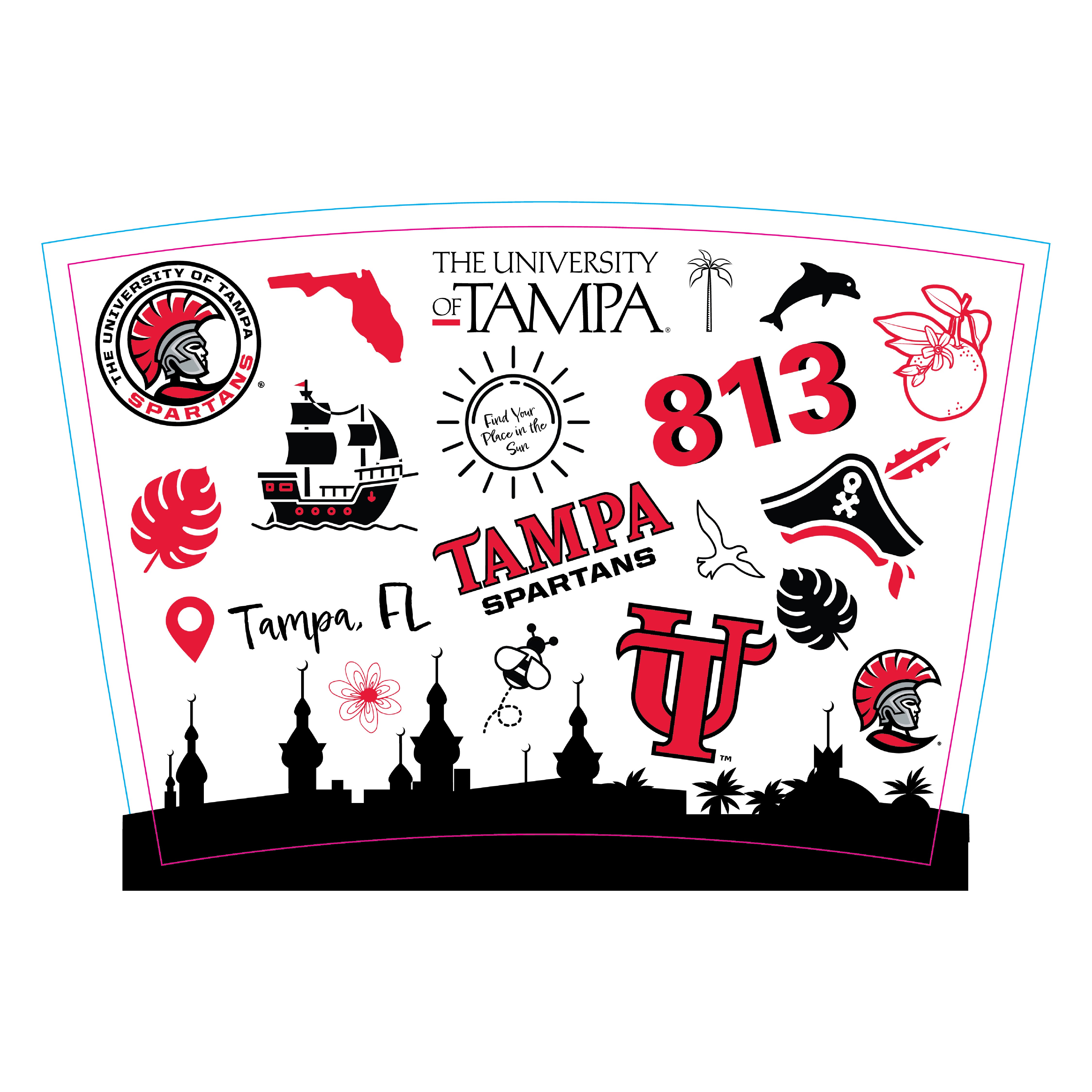I created graphic designs for University of Tampa t-shirts used in events, student programming, and campus initiatives. Each design balanced bold visual expression with brand alignment and production constraints.
